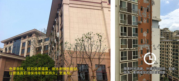 來士威不是在制造一個簡單的產(chǎn)品,而是延續(xù)建筑與人居的生命。外墻美觀度突顯建筑的檔次,來士威真石漆在用料上不惜成本,會選擇更優(yōu)良的乳液,添加更多的樹脂,為的就是讓涂裝效果更具保色性和耐久性,讓工程多年歷久持新。