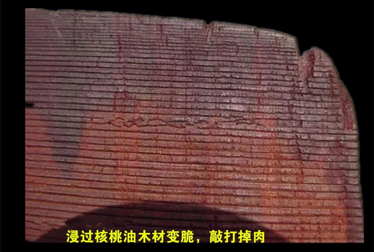 浸過核桃油木材變脆敲打掉肉
