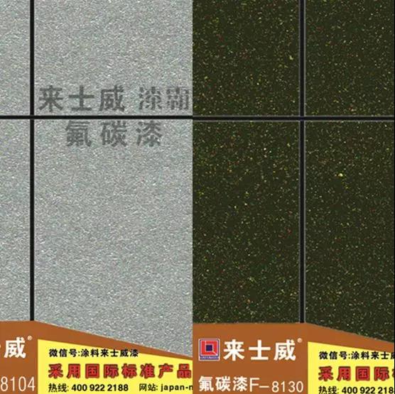 氟碳漆作為一種面漆品種,顏色多樣(各種實(shí)體色和金屬色等),光澤可選啞光、平光、無光等,為設(shè)計師和業(yè)主提供豐富的想象空間和奇異的裝飾效果。