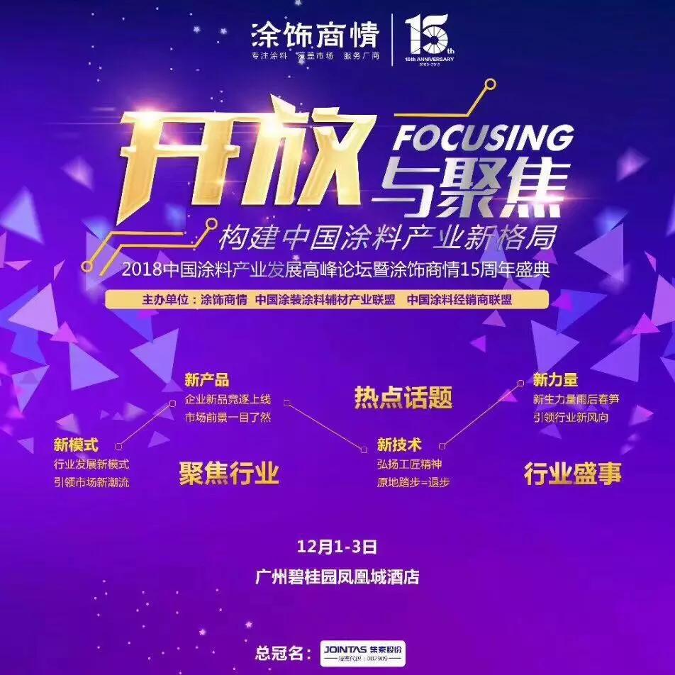 粵港澳大灣區(qū)建設全面推進的關鍵時刻、涂飾商情創(chuàng)刊15周年之際,向中國涂料行業(yè)產(chǎn)業(yè)鏈參與者發(fā)出最誠摯邀請:歡迎參與“2018中國(廣州)涂料產(chǎn)業(yè)發(fā)展高峰論壇暨涂飾商情15周年盛典”,共話中國涂料產(chǎn)業(yè)新格局。