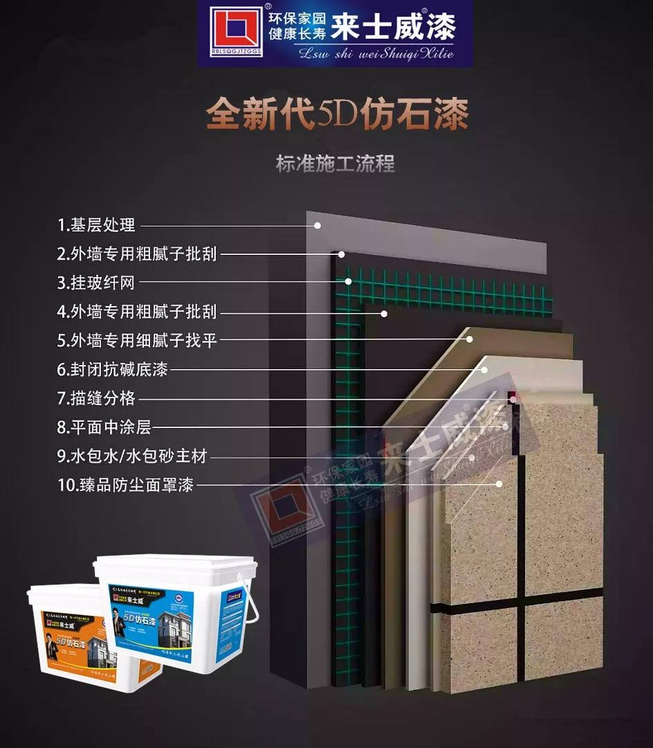 市場(chǎng)上千萬(wàn)種墻面材料,為什么5D仿石漆如此受寵?下面我來(lái)簡(jiǎn)單介紹一下5D仿石漆的特點(diǎn):1、具有良好的耐侯性,保色性。2、硬度高,防滲透!3、施工簡(jiǎn)便,周期短!4、漆膜自重小,附著力強(qiáng),負(fù)荷低!5、通過(guò)質(zhì)量檢測(cè)中心全面檢測(cè),無(wú)毒、無(wú)害、綠色環(huán)保!