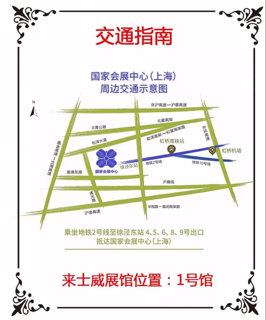 距虹橋機(jī)場(chǎng)1.5公里,距浦東國(guó)際機(jī)場(chǎng)約60公里,均可乘坐地鐵2號(hào)線(xiàn)至“徐涇東站”下車(chē)直達(dá)距上海虹橋火車(chē)站約1.5公里,可乘坐地鐵2號(hào)線(xiàn)至“徐涇東站”下車(chē)直達(dá)距上海火車(chē)站25公里,距上海南站23公里,均可乘坐地鐵3號(hào)線(xiàn)至“中山公園站”換乘2號(hào)線(xiàn)至“徐涇東站”下車(chē)直達(dá)上海地鐵2號(hào)線(xiàn)徐涇東站4、5、6、8、9號(hào)出口可直通展館。