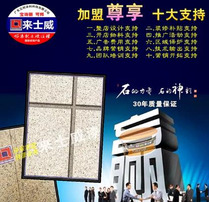 在來士威仿石漆展臺,人氣高漲,前來觀摩產(chǎn)品、了解加盟政策咨詢的用戶絡(luò)繹不絕。展臺展示的系列仿石漆及藝術(shù)漆產(chǎn)品效果匠心獨具、完美詮釋了來士威仿石漆的獨特魅力!每個系列都有不同的風(fēng)采,獨特的韻味。集藝術(shù)、色彩、技術(shù)、環(huán)保與實用于一體。藝術(shù)感強(qiáng)、色彩絢麗、紋理層次多變、手感極為優(yōu)越。一經(jīng)展出,咨詢了解的人蜂擁而至。據(jù)介紹,目前來士威仿石漆推出的多項豐厚的加盟政策,可以幫助經(jīng)銷商輕松實現(xiàn)低風(fēng)險、高收益的經(jīng)營。對于希望創(chuàng)業(yè)或?qū)で笫聵I(yè)發(fā)展突破的人士來說,來士威仿石漆是一個理想的選擇。