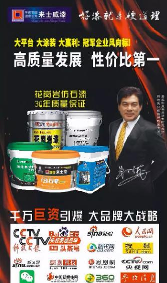 冠軍企業(yè)來士威仿石漆大系列強(qiáng)勢出擊 人氣爆棚 碩果累累! 2019年8月22日-23日“云南建博會”在昆明舉行。“由“建”到“裝”以一站式產(chǎn)品服務(wù)陳列展示全產(chǎn)業(yè)鏈覆蓋”——已發(fā)展成為建筑裝飾材料領(lǐng)域規(guī)模最大、最具影響力的行業(yè)盛會。本次展會上,來士威仿石漆攜帶系列仿石漆及藝術(shù)漆拳頭產(chǎn)品系列驚艷亮相展會,成為展會上的一大亮點。
