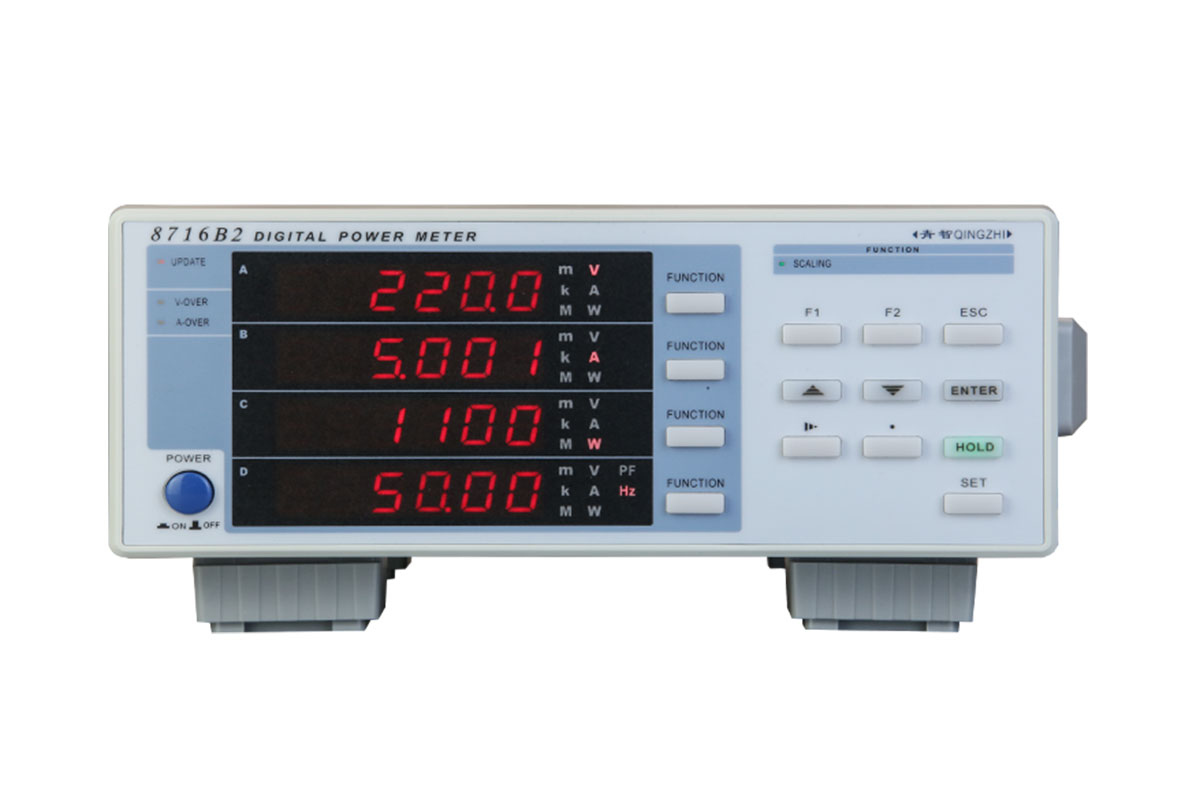 8716B2的設(shè)計采用了先進(jìn)的32位高速處理器和雙路24位AD轉(zhuǎn)換器,具有高精度、寬動態(tài)范圍、結(jié)構(gòu)緊湊靈巧等特點是新一代數(shù)字化電參數(shù)測量儀器,可以測量有效值電壓、電流、有功功率、功率因數(shù)、頻率。